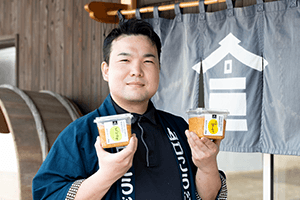 山口さんが家業を継いだのは、2019年。当時は大学院を出たばかりの24歳で、これほど早いタイミングで経営者になるとは予想外だったといいます。東京から白河に戻り、未経験から経営を行うことは大変な苦労でしたが、「地域の中小企業の社長さんたちに支えてもらいました。地域の若者が減っていく中で“頑張ってくれよ!”と期待をこめてサポートしてくださったのだと思います。今でも感謝しかないです」と話してくれました。また、家業を継いだ当時は会社が経営難に陥っていましたが、「僕が諦めたらこの会社は終わり、長年の歴史が途絶えてしまうという危機感から、仕事を終えたあとに毎日6商品試作を行い、1年で約1800件、3年で5000件以上のデータを集めることができました。これが今でも財産となり、さまざまな需要に応える商品を提供できています。また、休遊農地を使って大豆の自社生産を始めるなど、より自信を持って提供できる商品づくりに取り組むことで、海外での商品展開もできるようになりました。需要が増えても、定番商品を欠品することなく、うちの商品のファンをどんどん増やしていきたいです」と味噌づくりへの熱い思いを語ってくれました。