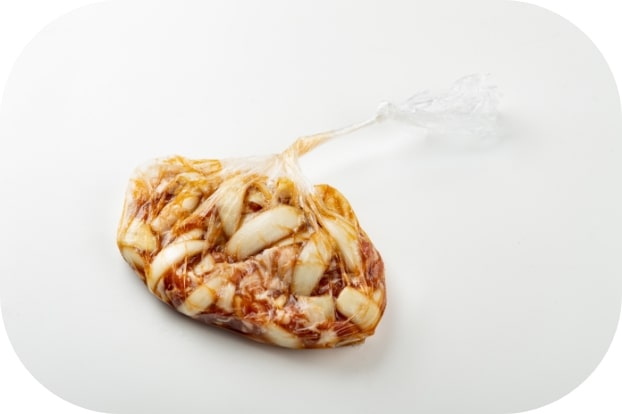 ポリ袋は、食品用の高密度ポリエチレン製(加熱用)を使用しましょう。